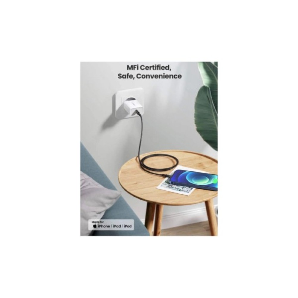 Це універсальний кабель для зарядки та передачі даних від бренду UGREEN, призначений для підключення пристроїв Apple з роз’ємом Lightning (iPhone, iPad, AirPods тощо) до джерела живлення або комп’ютера з USB‑C‑портом.