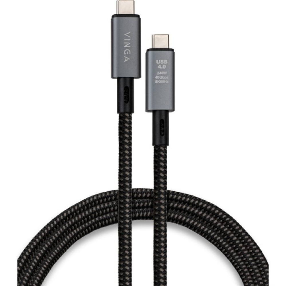 Дата кабель USB-C to USB-C 0.8m USB4 240W 40GBps 8K60Hz Nylon Vinga (VCPDCU4)