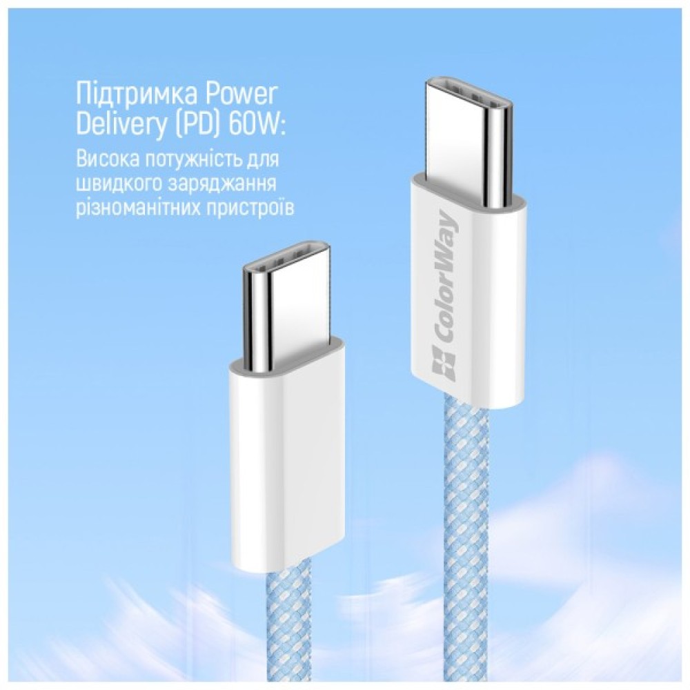 Дата кабель USB-C to USB-C 1.0m 60W 3.0А blue ColorWay (CW-CBPDCC061-BL)