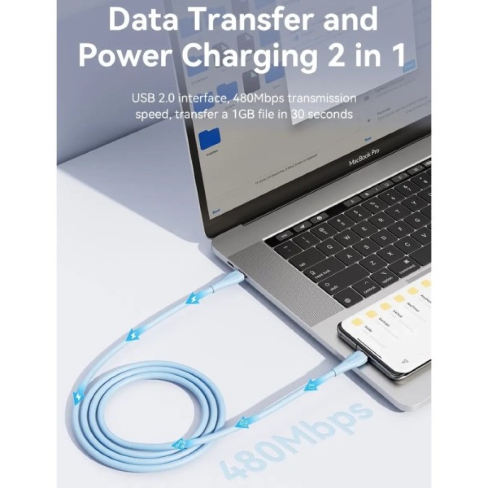 Модель: USB-C to USB-C 1.0m USB2.0 100W (20V/5A) Light Blu