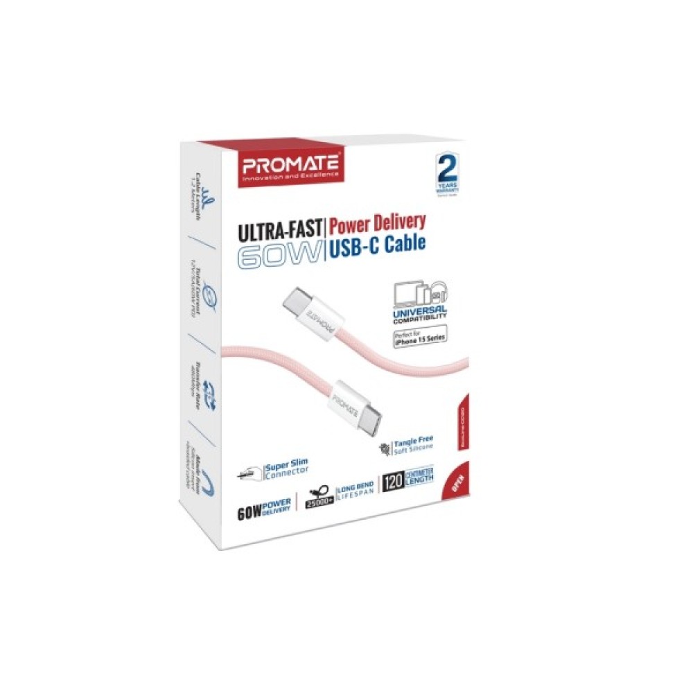 Дата кабель USB-C to USB-C 1.2m Promate (ecoline-cc120.pink)