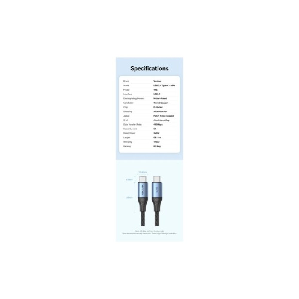 Цей кабель Vention USB-C на USB-C розроблений для забезпечення зарядки нового покоління, підтримуючи новітній стандарт Power Delivery 3.1 для вражаючої вихідної потужності до 240 Вт. Створений для користувачів високопродуктивних пристроїв, таких як MacBook Pro 16", ігрові ноутбуки та флагманські смартфони, як-от серія Samsung S23 Ultra або iPhone 15, він гарантує максимально швидке та безпечне живлення вашої електроніки. Довжина 1,5 метра забезпечує ідеальний баланс між гнучкістю та радіусом дії, що робить його придатним для настільних комп’ютерів, зарядки біля ліжка або подорожей. Виготовлений з конекторами з алюмінієвого сплаву преміум-класу та міцним нейлоновим обплетенням ззовні, цей чорний кабель поєднує в собі елегантний естетичний вигляд і надзвичайну довговічність, щоб витримувати суворі умови щоденного використання, забезпечуючи при цьому ефективну синхронізацію даних.