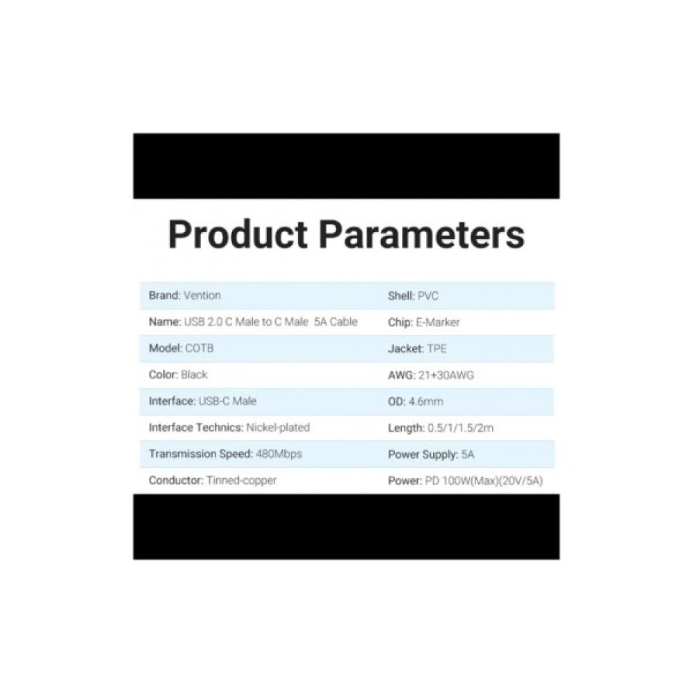 Дата, кабель, USBC, to, USBC, 15m, 5A, black, Vention, COTBG