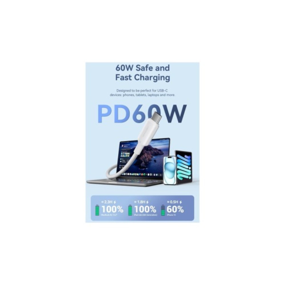 Це універсальний кабель USB‑C → USB‑C довжиною 2 м для зарядки і передачі даних, який поєднує високу потужність, надійність і довговічність. Модель виконана з міцних матеріалів, включно з алюмінієвими корпусами конекторів та тканинним обплетенням, що робить його стійким до вигинів і механічних пошкоджень.