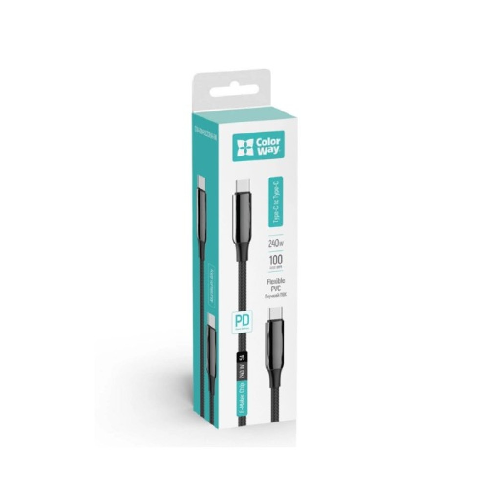 Дата, кабель, USBC, to, USBC, 20m, PVCAluminum, Alloy, PD, Fast, Charging, 240W, , black, ColorWay, CWCBPDCC070BK