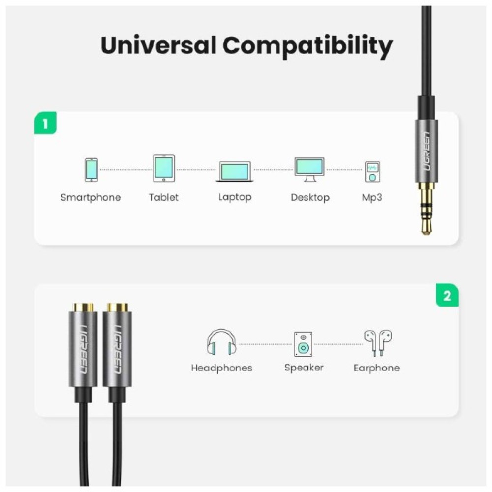 Кабель, мультимедійний, 35mm, M, to, 2x35mm, F, 02m, AV123, black, Ugreen, 10532