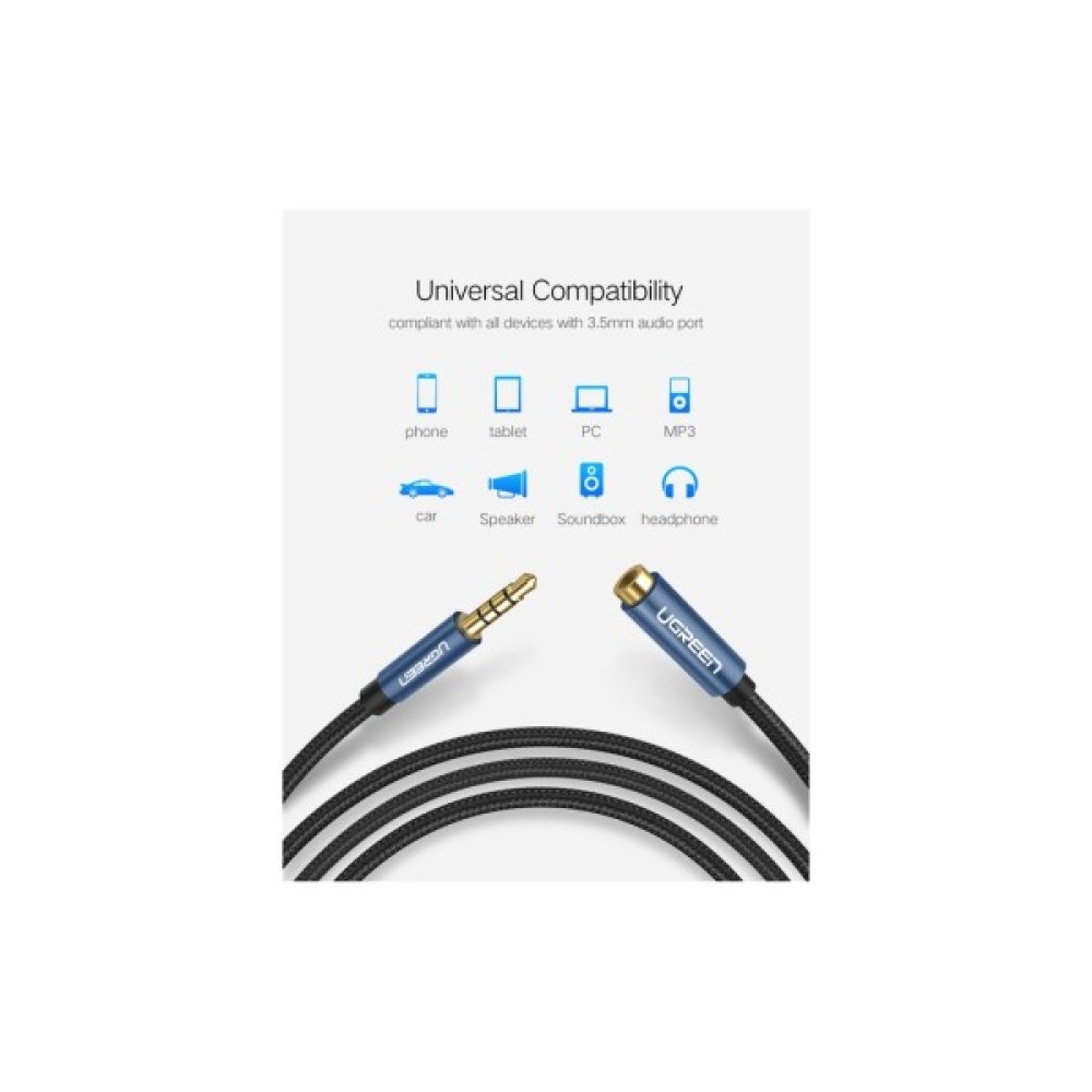 Подовжувальний аудіокабель Ugreen 3.5 мм розширює з'єднання між вашим iPhone, iPod, MP3-плеєрами, смартфонами, планшетами або будь-якими іншими пристроями, оснащеними 3.5-мм додатковим портом, з вашими навушниками, динаміком, автомобільною стереосистемою або системою домашнього кінотеатру і т. д.