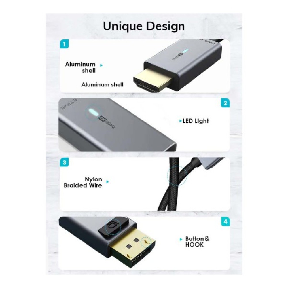 Кабель DP-HDMI дозволяє підключитися до будь-якого телевізора, проектора або монітора з портом HDMI для отримання приголомшливого, плавного відео з роздільною здатністю до 4K.