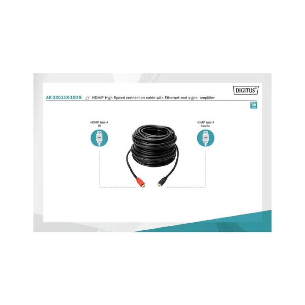 Кабель мультимедійний HDMI M to HDMI M 10.0m 4K Amplifier Digitus (AK-330118-100-S)