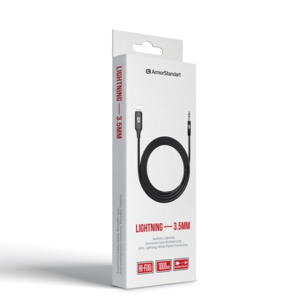 Кабель ArmorStandart Lightning Male to 3.5mm (mini-Jack) Male – це надійний та функціональний кабель довжиною 1 метр, призначений для забезпечення високоякісного звуку при підключенні вашого пристрою з роз'ємом Lightning до пристроїв із входом 3.5 мм. Завдяки використанню подвійного екранування та нікельованих конекторів, кабель гарантує надійність передачі сигналу, знижуючи втрати та шум при використанні. Крім того, його плетений нейлоновий корпус забезпечує високу зносостійкість, що робить кабель довговічним та приємним на дотик.