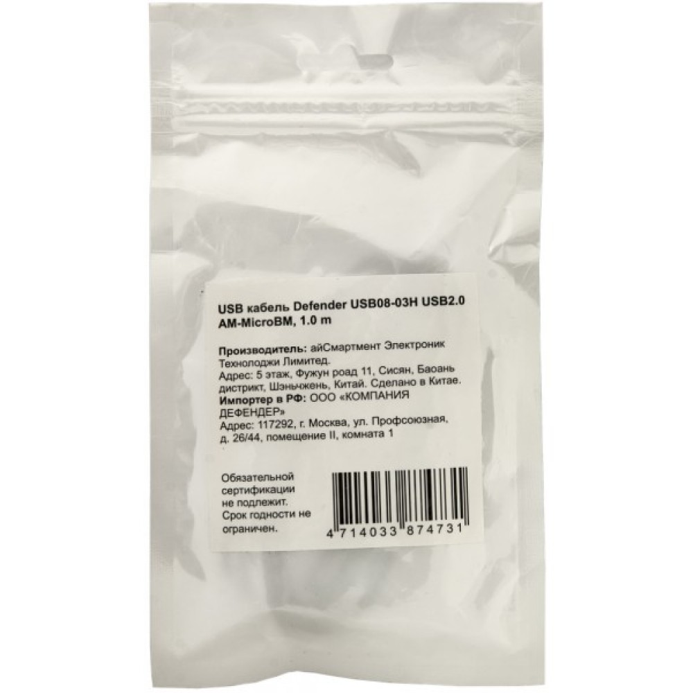 Дата кабель Defender USB08-03H USB 2.0 - Micro USB, 1.0 m (87473) - кабель призначений для підключення до ПК, смартфонів, мобільних телефонів, планшетів, цифрових камер, навігаторів, відеореєстраторів та інших пристроїв.
