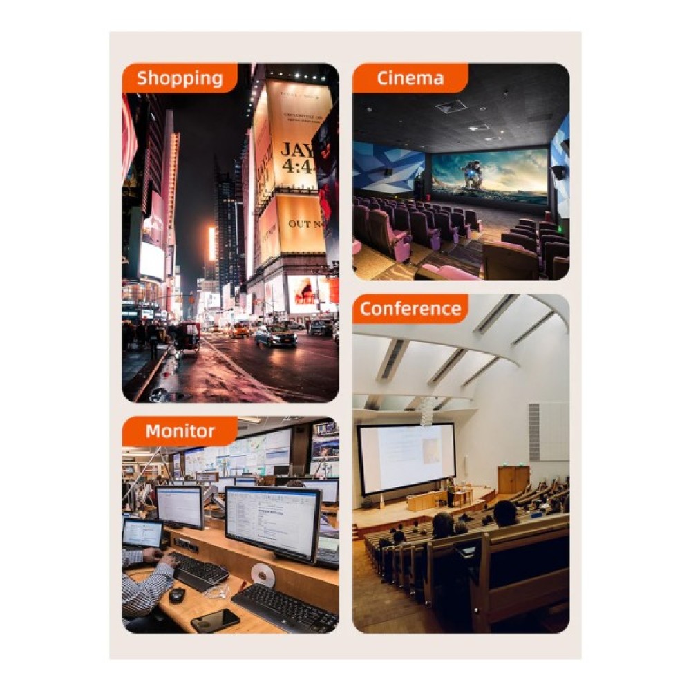 - Застосування: цифрове телебачення, світлодіодні вивіски, домашній кінотеатр, Blu-ray, 3D-відео, проектори, телевізійні приставки, відеореєстратори, ігрові консолі, комп'ютери, системи відеоспостереження та безпеки.