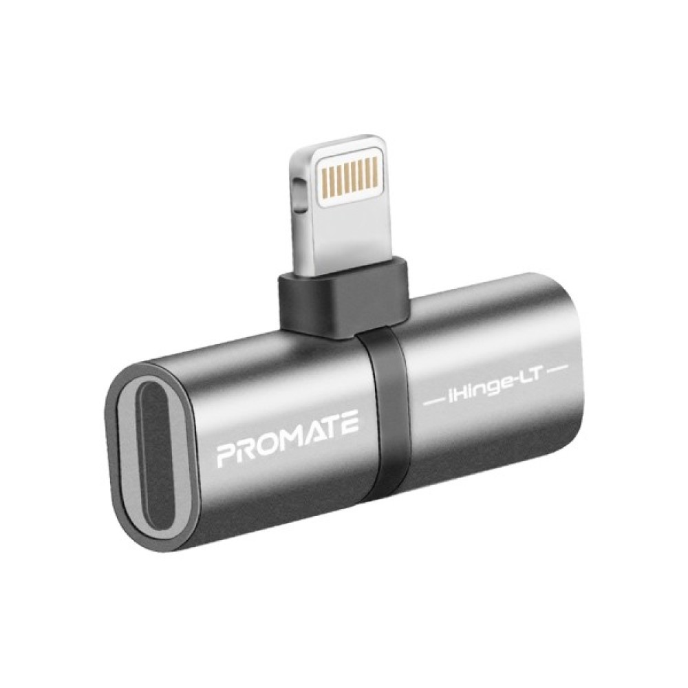 Перехідник Lightning M to 2xLightning F Audiо + Charge Promate (ihinge-lt.grey)