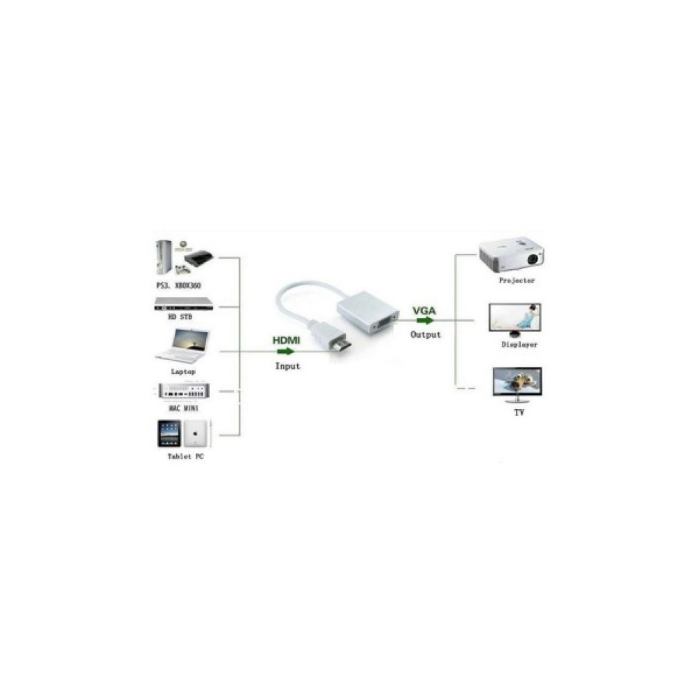 Адаптер STLab U-990 HDMI — VGA дозволяє перетворити цифровий сигнал HDMI в аналоговий сигнал VGA (але не навпаки) з підтримкою стереозвуку і вивести на монітор або проектор. З його допомогою можна підключити ноутбук, планшет або ігрову приставку XBOX360/PS3/PS4/STB (з HDMI-виходом) до комп'ютерного монітора, проектора c VGA-входом.