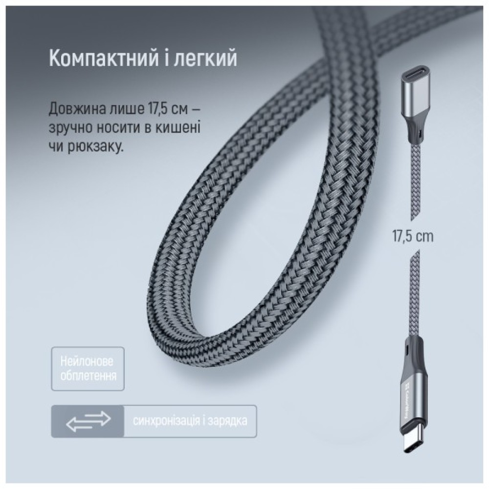 - Компактний та легкий — довжина кабелю 17.5 см.
