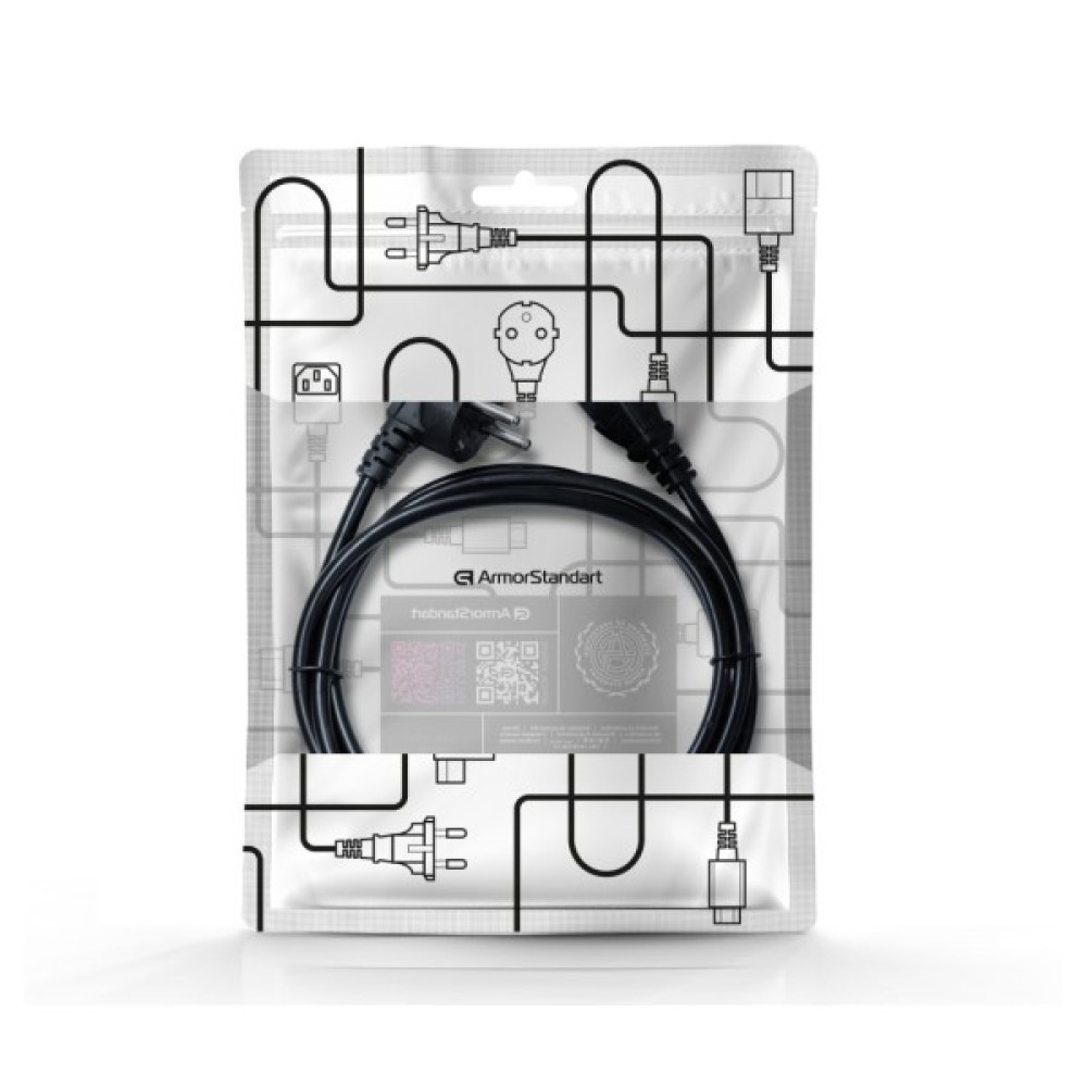 Мережевий кабель живлення ArmorStandart CEE 7/7 – C13 1.8 м забезпечує стабільне та безпечне підключення електронних пристроїв до електромережі. Призначений для блоків живлення стаціонарних комп'ютерів та інших пристроїв, що використовують роз'єм C13.