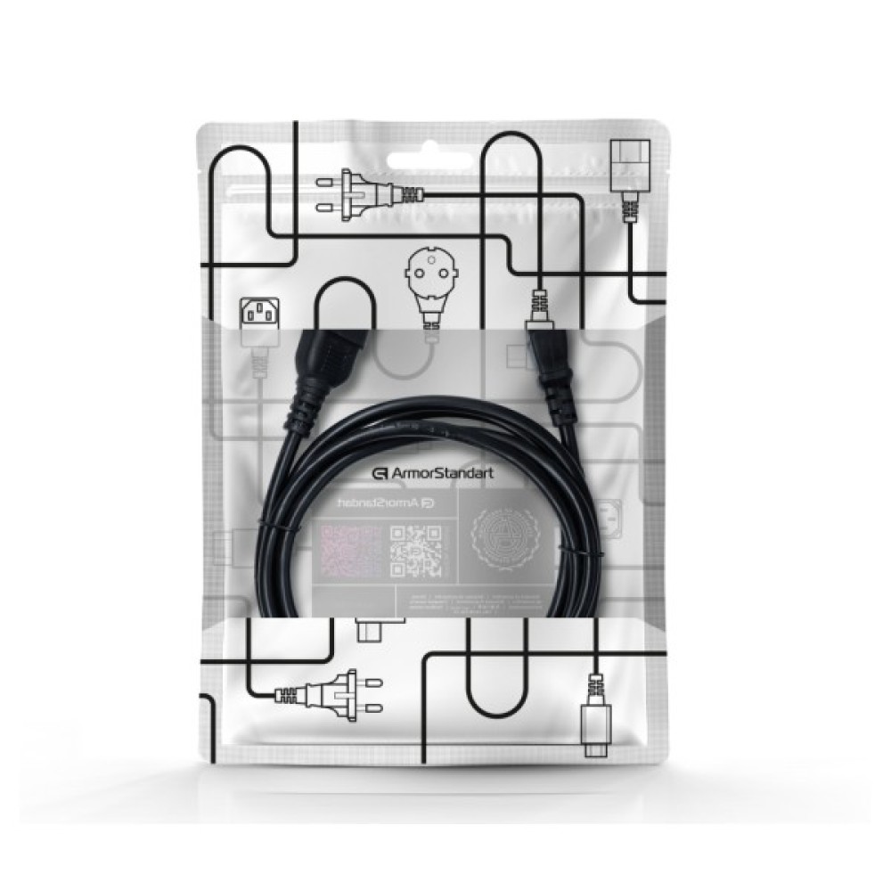 ArmorStandart C13 - C14 – це надійний мережевий кабель, призначений для блоків живлення портативних комп'ютерів, для стаціонарних комп'ютерів та іншого обладнання, що потребує відповідного типу з'єднання. Завдяки довжині 2 метри він забезпечує зручність у підключенні навіть у випадках, коли розетка розташована на певній відстані від пристрою.