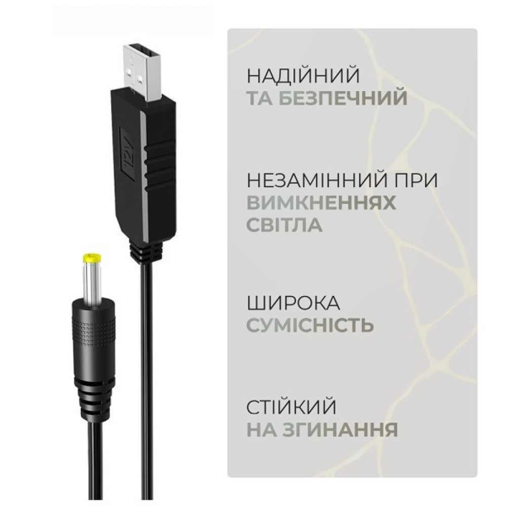 Кабель живлення ArmorStandart USB-DC 4.0x1.7 12V 0.8 м допомагає при вимкненні електрики запитати роутер від повербанку та продовжувати користуватися інтернетом (якщо провайдер продовжує подавати інтернет у роутер).