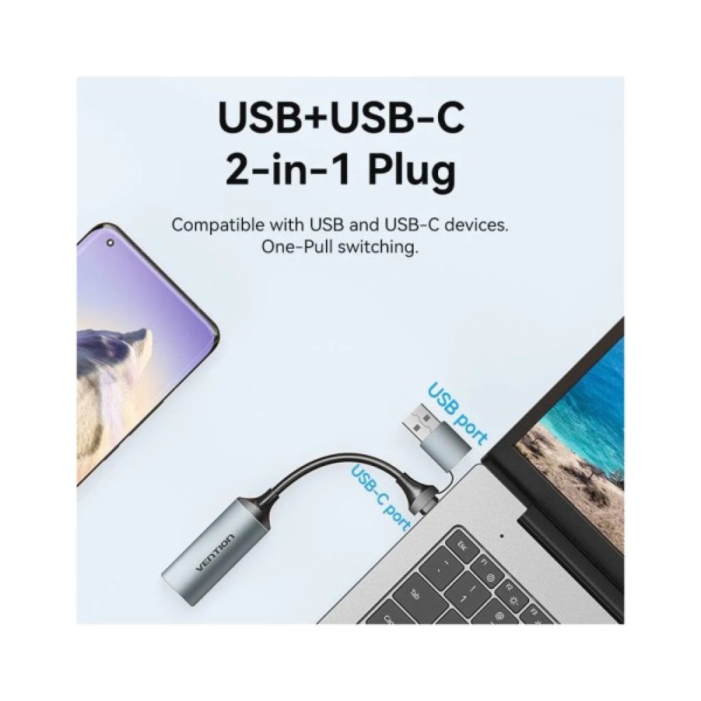 Перехідник USB-C + USB-A to HDMI M 0.1m video capture gray Vention (ACWHA)