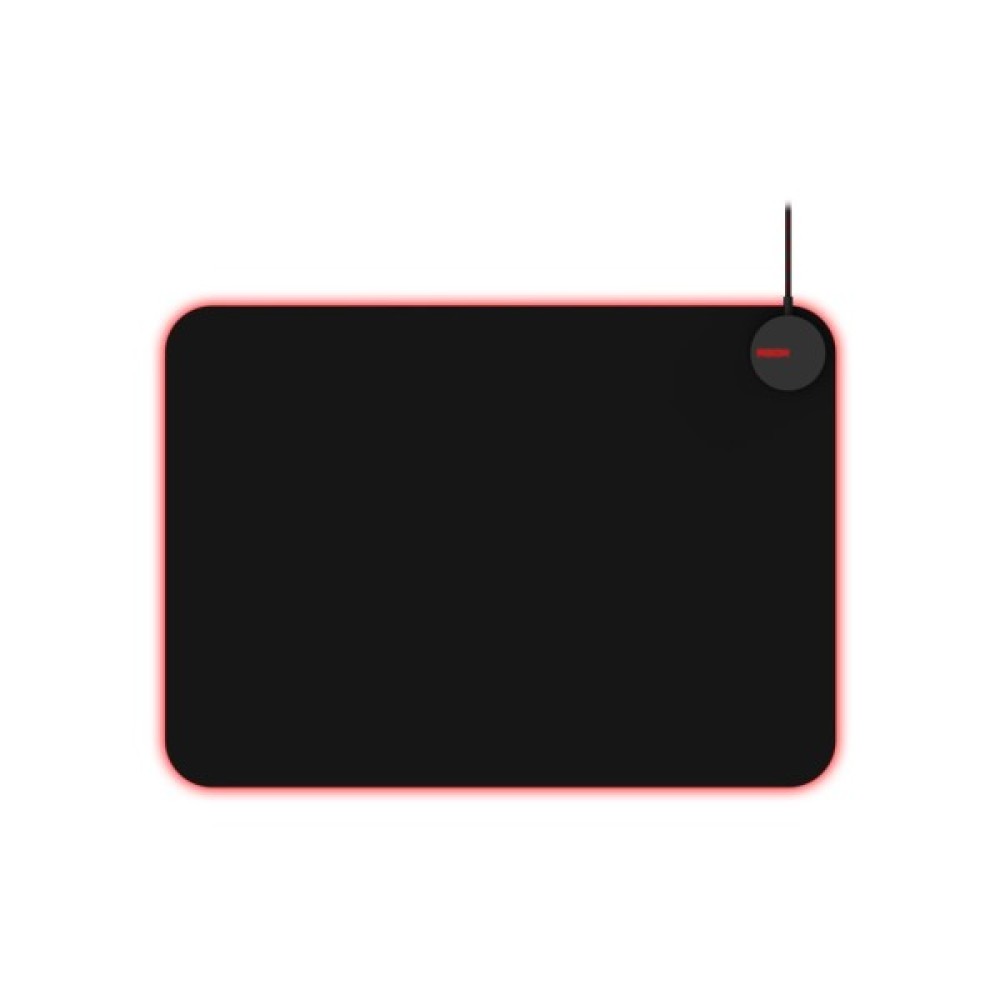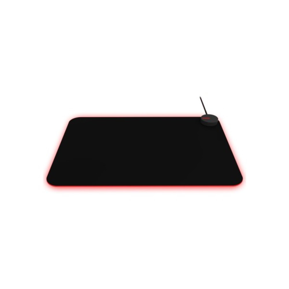 Поверхня виготовлена з міцної та гладкої тканини, що забезпечує високу швидкість переміщення миші та точне відстеження курсору. Її краї оздоблені світлодіодною стрічкою, яка вмикається за допомогою USB кабелю та підтримує синхронізацію Light FX Sync RGB.
