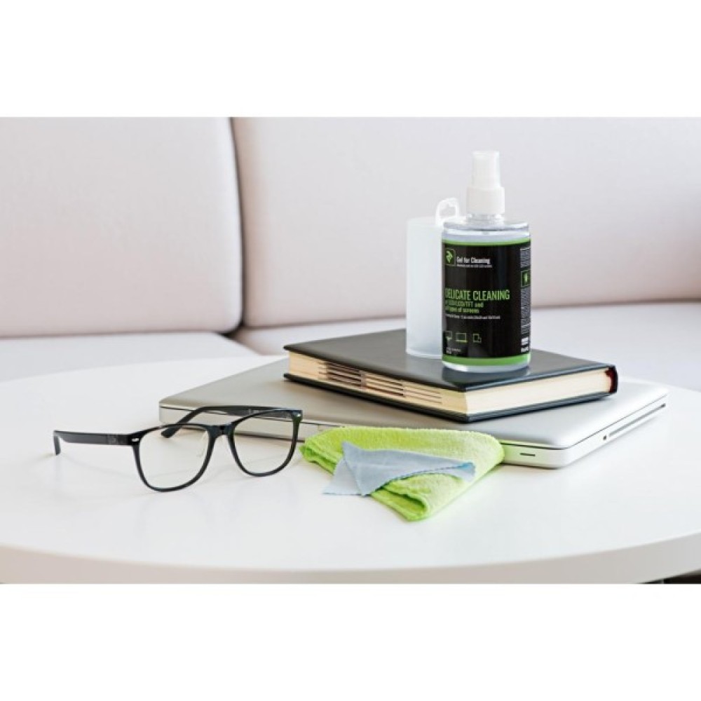 Набір призначений для м’якого та безпечного видалення бруду, пилу і жирних плям з екранів електронних пристроїв – моніторів, ноутбуків, телевізорів та іншої техніки. Ємність оснащена розпилювачем, рідина не містить алкоголю, а серветки добре усувають будь-які сліди та розводи.