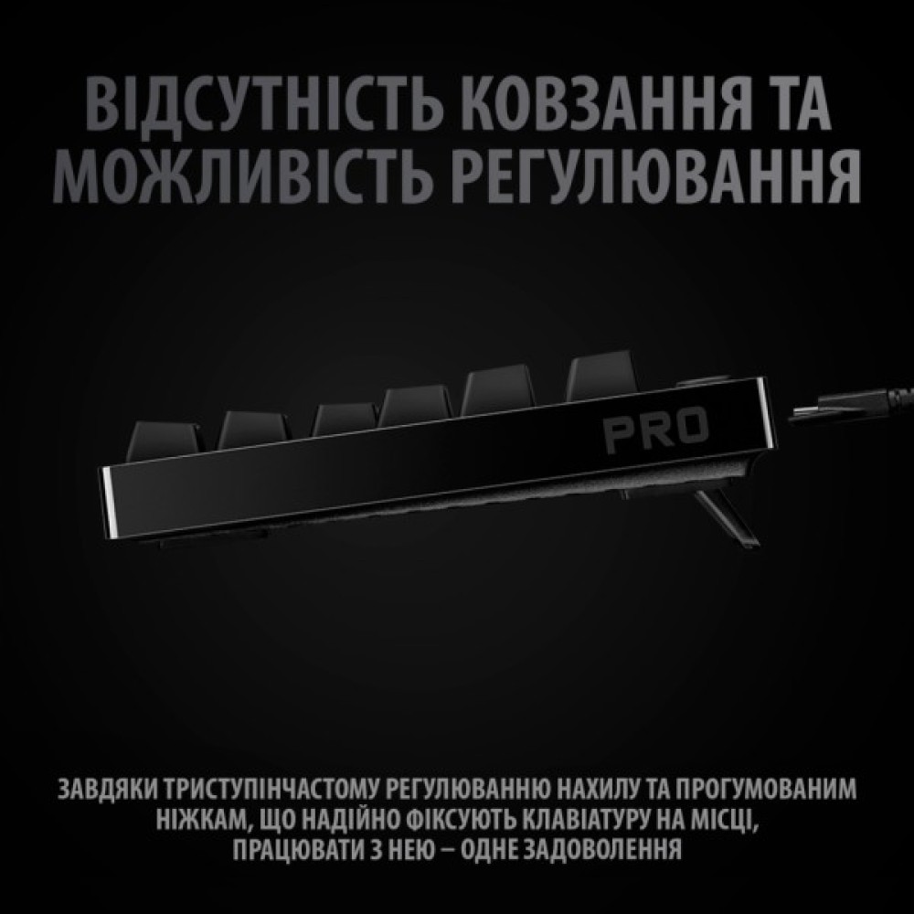 Клавіатура Logitech G PRO Mechanical Gaming USB UA Black є ідеальним поєднанням естетики та практичності, що робить її не просто аксесуаром, а справжнім інструментом для досягнення нових висот у світі кіберспорту. Її виняткові можливості та ергономічний дизайн роблять її незамінним партнером на шляху до перемоги.