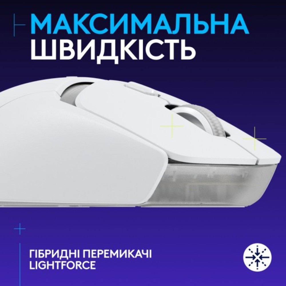 Естетичні характеристики Logitech G309 також заслуговують на увагу. Лаконічний білий корпус мишки підкреслює її сучасний і стильний вигляд, що чудово доповнить будь-яке робоче місце чи ігрову зону. Завдяки компактним розмірам 120 x 64 x 39 мм та вазі 86 г, мишка ідеально підходить для тривалих сеансів гри або роботи, забезпечуючи комфорт при використанні ноутбука.