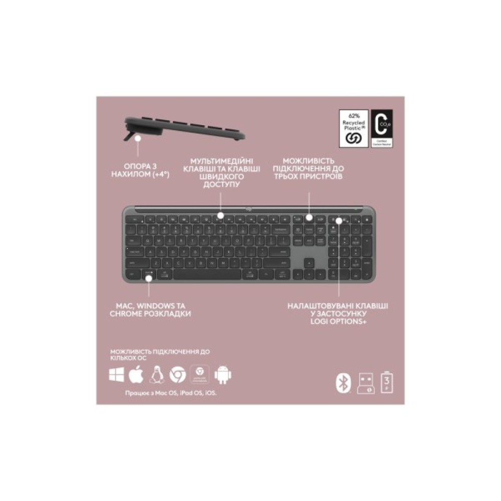 Клавіатура, Logitech, K950, BluetoothWireless, UA, Graphite, 920012465