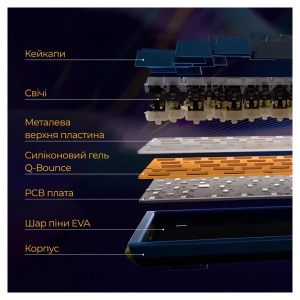 Унікальна Hot-Swap технологія з роз'ємами Yellow Sockets від Kailh дозволяє замінювати перемикачі на ваш розсуд. Ніякого паяння — лише легка персоналізація, що відкриває безмежні можливості для творчості. Завдяки цьому, клавіатура стає персональним інструментом, який відповідає вашим індивідуальним вподобанням.