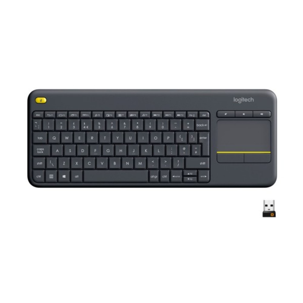 Клавіатура Logitech K400 Plus Touch Wireless UA Black (920-007145) — це удосконалене мультимедійне рішення для комфортного керування вашими пристроями. Завдяки зручному бездротовому підключенню за допомогою USB адаптера 2.4 ГГц, ця клавіатура дозволяє керувати комп’ютером, під'єднаним до телевізора, без зайвих зусиль.
