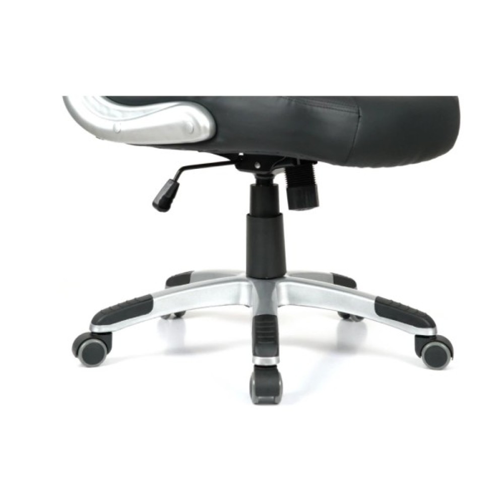 Хрестовина. Хрестовина у даного крісла із міцного хромованого металу. Завдяки цьому йому забезпечено надійність та стійкість. При цьому він легко пересувається за допомогою роликів. Хромоване покриття дуже стійке, воно відмінно захищає поверхню від дрібних подряпин та пошкоджень. Така хрестовина з часом не втратить свій первинний зовнішній вигляд і довго радуватиме вас своїм холодним блиском. Універсальні прогумовані ролики, які за замовчуванням встановлені в кріслі, підійдуть для будь-якого типу покриття для підлоги.
