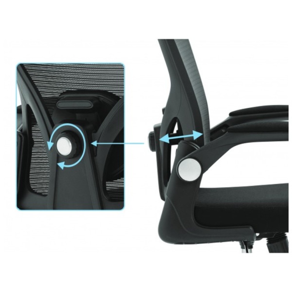 Конструкція крісла розроблена з урахуванням останніх ергономічних тенденцій. Рама, виготовлена зі міцного металу та надійного пластику, гарантує стійкість та тривалий термін служби. Сітчаста спинка у поєднанні з текстильною оббивкою зберігає оптимальну температуру тіла, забезпечуючи природну вентиляцію та запобігаючи перегріву ваших плечей. Чорний колір оббивки додає елегантності та гармонійно вписується в будь-який інтер'єр.