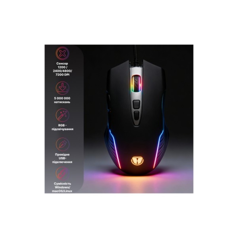 Із сімома програмованими кнопками, дана мишка дозволяє налаштовувати макроси та спеціальні команди, підлаштовуючи гру під ваш стиль. Це відкриває перед вами безмежні можливості для реалізації стратегічних маневрів.