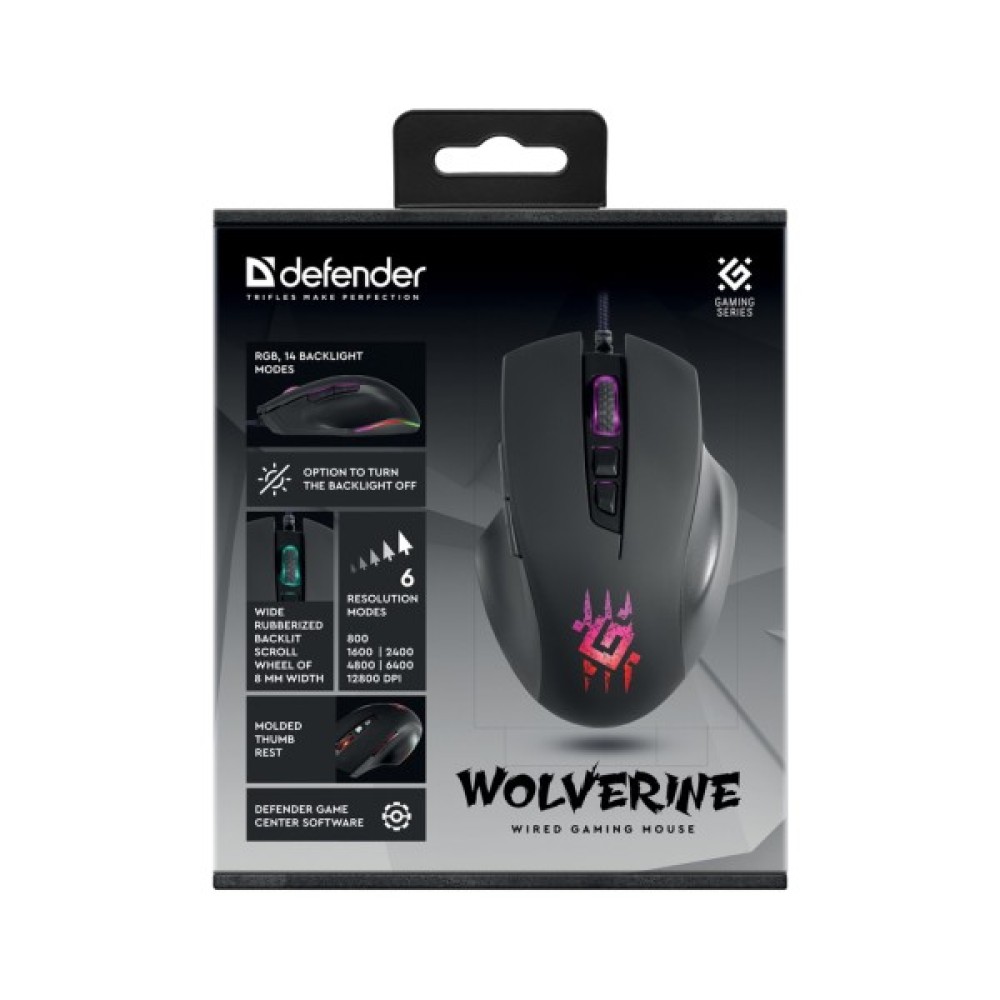 Захоплює і якість виготовлення Defender Wolverine GM-700L — це миша, яка на 100% відповідає сучасним вимогам геймінгу. Її чорний стильний колір і лаконічний дизайн роблять її універсальною як для домашнього, так і для офісного використання.