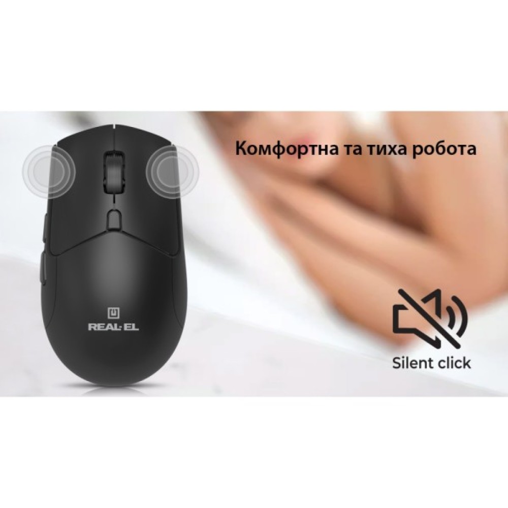 Обираючи мишку REAL-EL RM-460W Wireless/Bluetooth Black, ви отримуєте функціональний, стильний та високоякісний пристрій. Вона задовольнить всі ваші вимоги, надаючи максимальний комфорт під час роботи. Це оптимальний вибір для тих, хто цінує якість та зручність у кожній деталі свого робочого процесу.