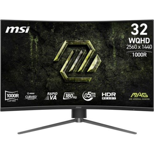 MSI MAG 325CQPF-E18 — ігровий монітор з вигнутим VA-екраном, 180 Гц, 0.5 мс та AI Vision для деталізації. Чудовий вибір для ігор, фільмів та роботи з яскравими кольорами та плавними кадрами. Один з доступних моніторів MSI 2025–2026 років для геймерів і мультимедіа.