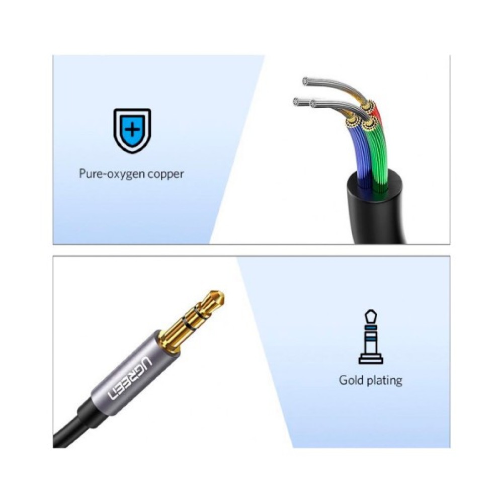 Міжблоковий кабель Ugreen AV118 3.5 мм Male to 3.5 мм Female – це надійний 4-піновий аудіо кабель AUX 3.5 мм jack, для високоякісної передачі стереосигналу.