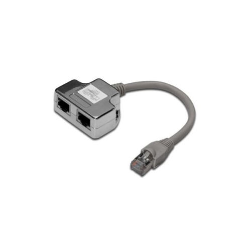 Спліттер (розгалужувач) DIGITUS витої пари, STP, cat.5e, 1x2RJ-45 (DN-93904)Патч-кабель оснащений фіксатором з захисним ковпачком.Екрановані адаптери патч-кордів складаються з двох роз'ємів RJ45 і 0,19-метрового патч-корду з роз'ємом RJ45.