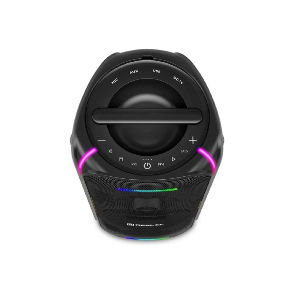 - Заливне RGB-підсвічування навколо динаміків та по боках робить атмосферу ще яскравішою — справжнє шоу в кожному треку.