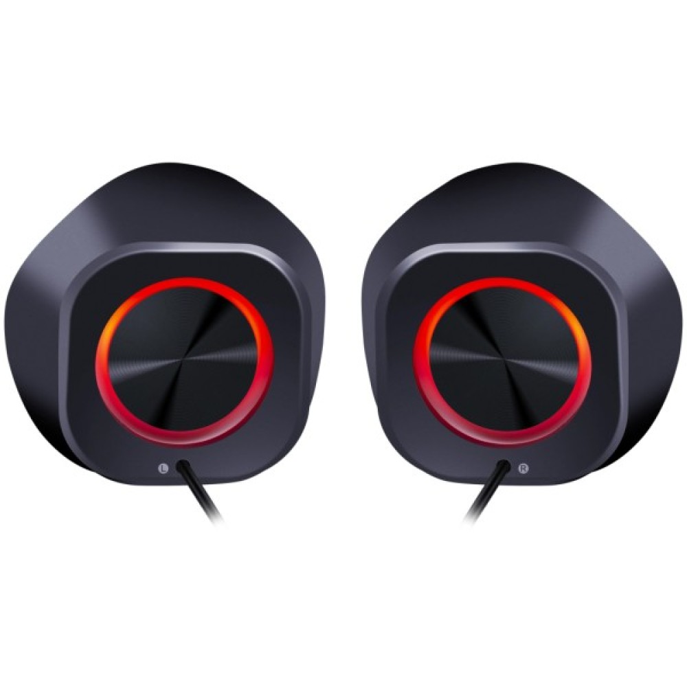 Особливості цієї акустичної системи підкреслює оригінальне RGB LED підсвічування, яке надає пристрою динамічності та підкреслює його ігровий характер. Підсвічування додає нотку естетики та допомагає створити унікальну атмосферу в приміщенні. Використаний матеріал корпусу – пластик та гума – надають не лише сучасного вигляду, але й забезпечують додатковий захист від пошкоджень.