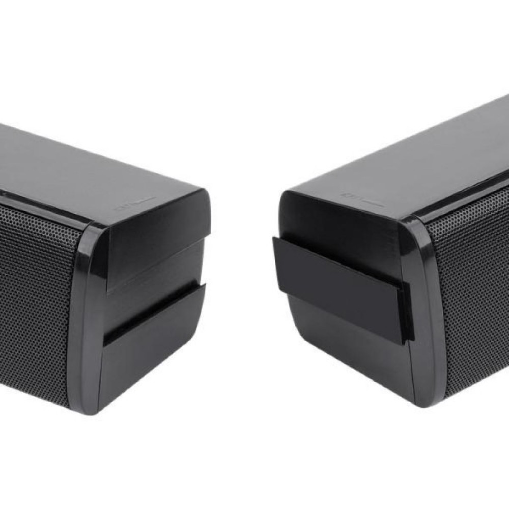 Корпус колонок виготовлений з якісного пластику, що гарантує міцність і довговічність. Дизайн виконаний у стильному чорному кольорі, що дозволяє акустичній системі органічно вписатися в будь-який інтер'єр, додаючи елегантний акцент на вашому робочому столі або вітальні.