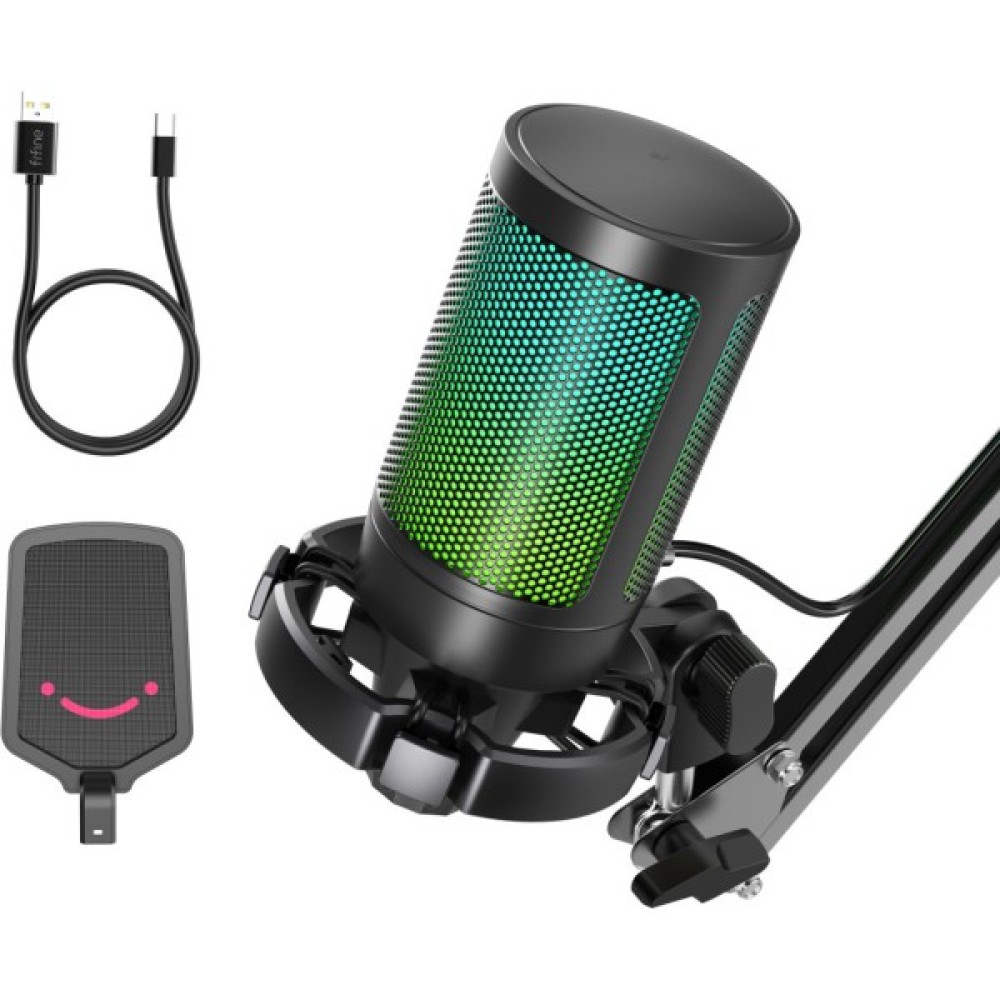 Кінець потокового мікрофона має реверсивний інтерфейс Type-C, без проблем підключити правильний шлях у напівтемній ігровій атмосфері. USB-кабель довжиною 8.3 фута (2.5 м) достатньо довгий, щоб простягнути його з-за головного комп’ютера на робочий стіл для чіткого запису ігрового звуку. Двоколірний автоматичний градієнт RGB робить ваш мікрофон комп’ютера вишенькою на торті. Завдяки м’яким і узгодженим світловим ефектам ваше ігрове відео або пряма трансляція будуть ще більш привабливими за допомогою мікрофона ПК із штангою. Зробіть так, щоб ваш канал виділявся в списку рейтингу. Якщо ви просто граєте в ігри, насичений колір RGB на стримерному мікрофоні, який поєднується з вашими переливними кольорами комп’ютерних аксесуарів, може задовольнити потреби в більшій ігровій атмосфері. Налаштування сенсорної кнопки вимкнення звуку вгорі можна легко торкнутися однією рукою замість того, щоб тримати мікрофон комп’ютера під час гри, щоб натиснути кнопку. Швидке вимкнення звуку не вплине на роботу клавіатури комп’ютера Macbook, а також на цокаючий звук. Велика ручка регулювання гучності в нижній частині USB-мікрофона полегшує точне налаштування, і ви можете регулювати гучність мікрофона на штанзі за бажанням, не відриваючись від ігрового екрана.