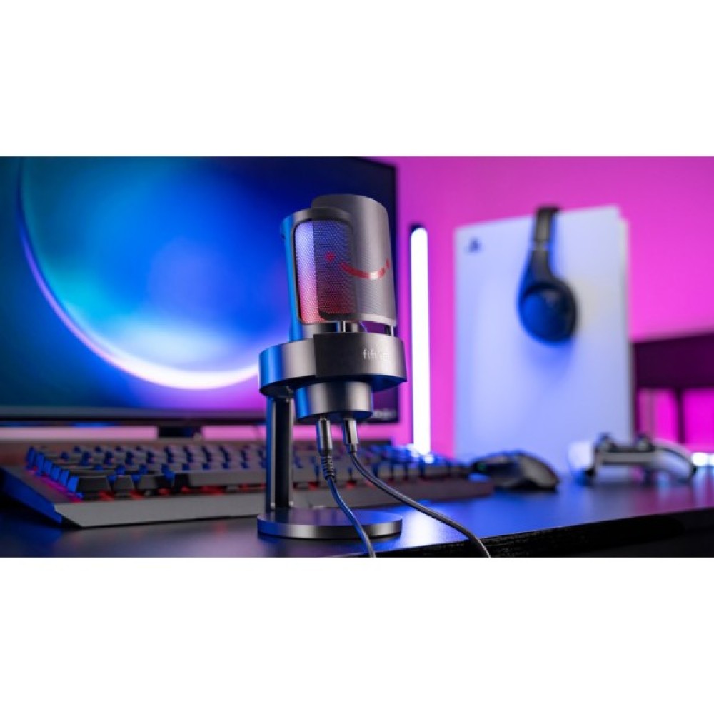З боку корпусу Fifine A8 є регулятор рівня гучності мікрофона. Це дозволяє настроювати звук у процесі використання, не входячи в налаштування аудіопристроїв. Якщо є топ-список ігрових функцій, швидке відключення звуку має претендувати на корону. З вбудованою у верхній частині мікрофона сенсорною кнопкою вам не потрібно запам’ятовувати ще одну гарячу клавішу. А світлодіодний значок гарантує відсутність випадкового вимкнення звуку під час потоку. Безрамковий прозорий стиль поп-фільтра з логотипом Fifine у вигляді смайлика доповнює загальний дизайн. Він ще більше мінімізує себе завдяки злегка вигнутій формі. Гніздо для навушників без затримки є значною перевагою при виборі мікрофона. Подкастери мають шанс повернутися назад і перезняти запис епізоду, але це ніколи не приємно робити. Мікрофон має гарну чутливість до низьких, середніх і високих частот, завдяки чому він відмінно підійде для будь-якої галузі застосування: підкастингу, озвучування, а також запису інструментів.