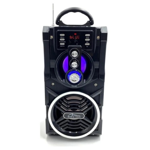 Роз'єми Jack 6.35 мм, вхід для мікрофона з AUX, карта пам'яті та бездротовий пульт ДУ роблять цю систему надзвичайно універсальною та функціональною. Регулювання тону допоможе вам налаштувати звук під ваші уподобання, роблячи Media-Tech Boombox BT MT3150 досконалим рішенням для будь-якої музичної події.