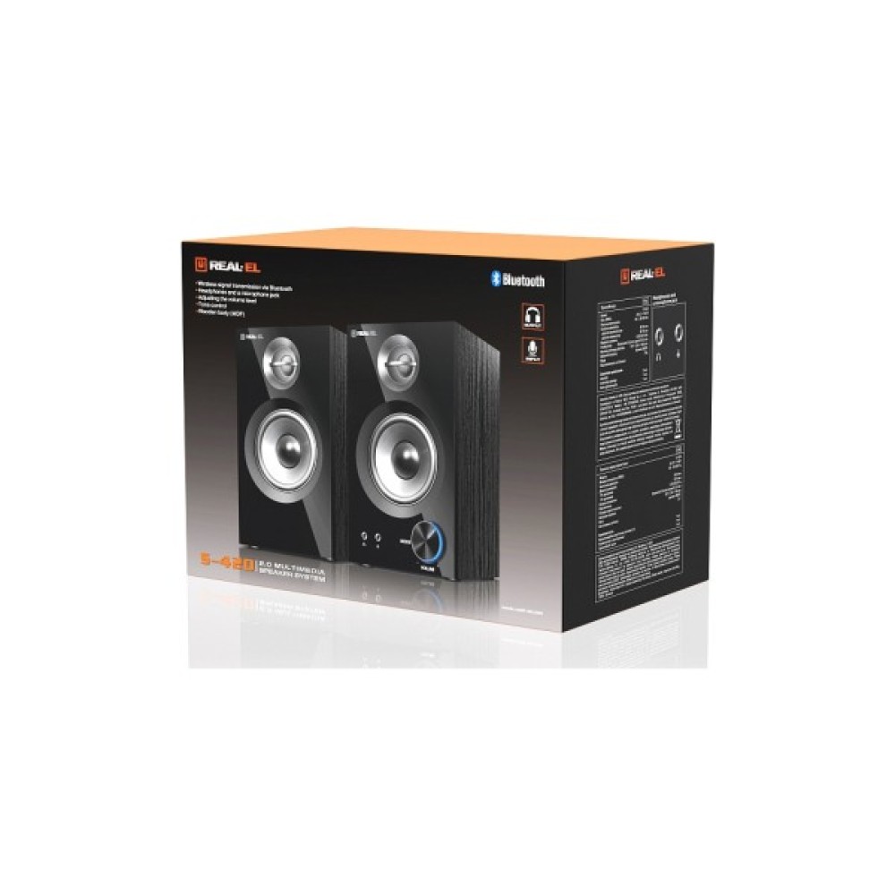 REAL-EL S-420 – це ваш особистий еквалайзер світу звуків, що дарує відчуття повного занурення, будь-то мелодія, приглушені ритми чи інтенсивний саундтрек. Вибір на користь REAL-EL S-420 Black – це інвестиція у якість та насолоду від звуку кожного дня. Насолоджуйтесь чіткістю та потужністю звуку разом з REAL-EL S-420 – вибір, який виправдає всі очікування.
