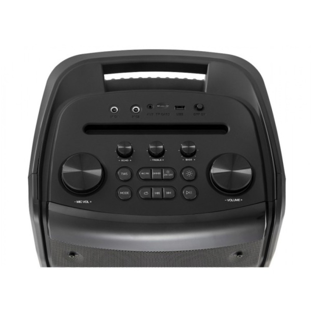 Унікальною функцією цього пристрою є можливість підключення через функцію TWS, яка дозволяє вам створити стереопару з двох таких систем, подвоюючи загальну потужність до 180 Вт. Це оптимальне рішення для проведення масштабних заходів, вечірок або просто насолоди улюбленою музикою на максимумі.