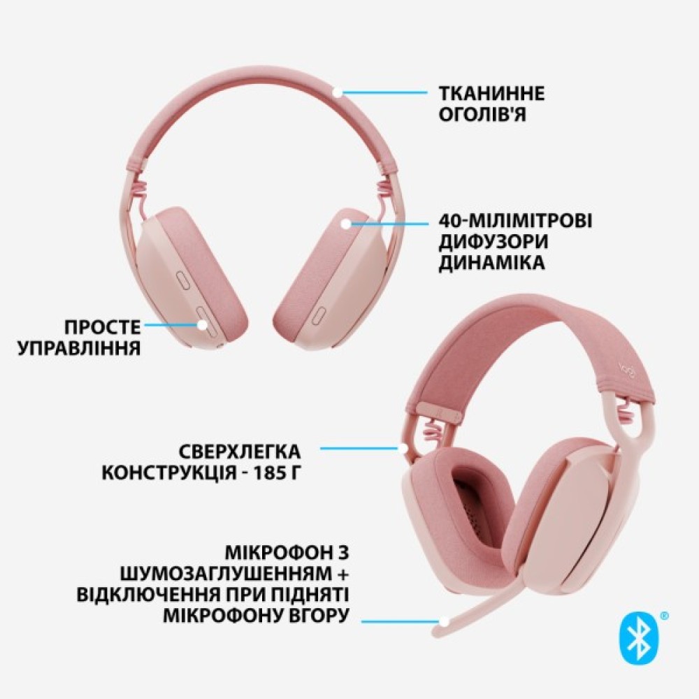Навушники, Logitech, Zone, Vibe, 100, Wireless, Rose, 981001224