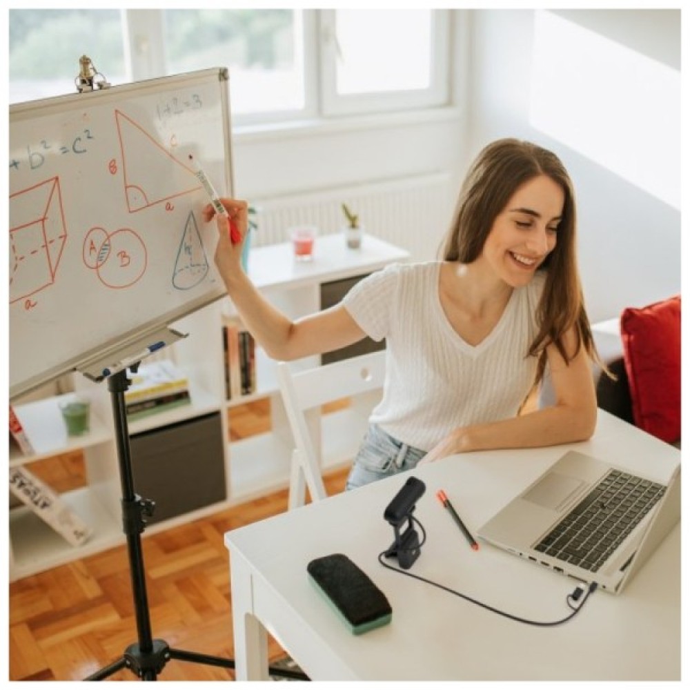Має функції автофокусування та ручного фокусування для зменшення розмитості. Підтримує роздільну здатність до Full HD 1080p для чіткого та ясного відео; це ідеальна камера для використання в офісі та вдома. Спеціальна конструкція кріплення дозволяє легко перемикатися між зйомкою документів та спілкуванням віч-на-віч. Поставляється з високоякісним мікрофоном для зменшення зовнішнього шуму. Підвищує світлочутливість, яка автоматично налаштовується під різні умови освітлення. Ця веб-камера працює за принципом «підключи і працюй» і сумісна з популярними програмами, такими як Zoom, Skype, Microsoft Teams і Google Meet. Веб-камера сумісна з Windows, macOS і Chrome OS.