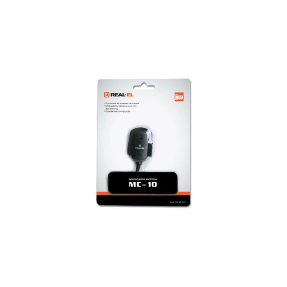Мікрофон REAL-EL MC-10 - це зручний та надійний мікрофон-кліпса, який призначений для спілкування через Інтернет, запису слів i фраз під час вивчення іноземних мов. Мікрофон має кліпсу для кріплення на одязі, а також знімне кріплення, призначене для фіксації моделі на столі або на корпусі монітора.