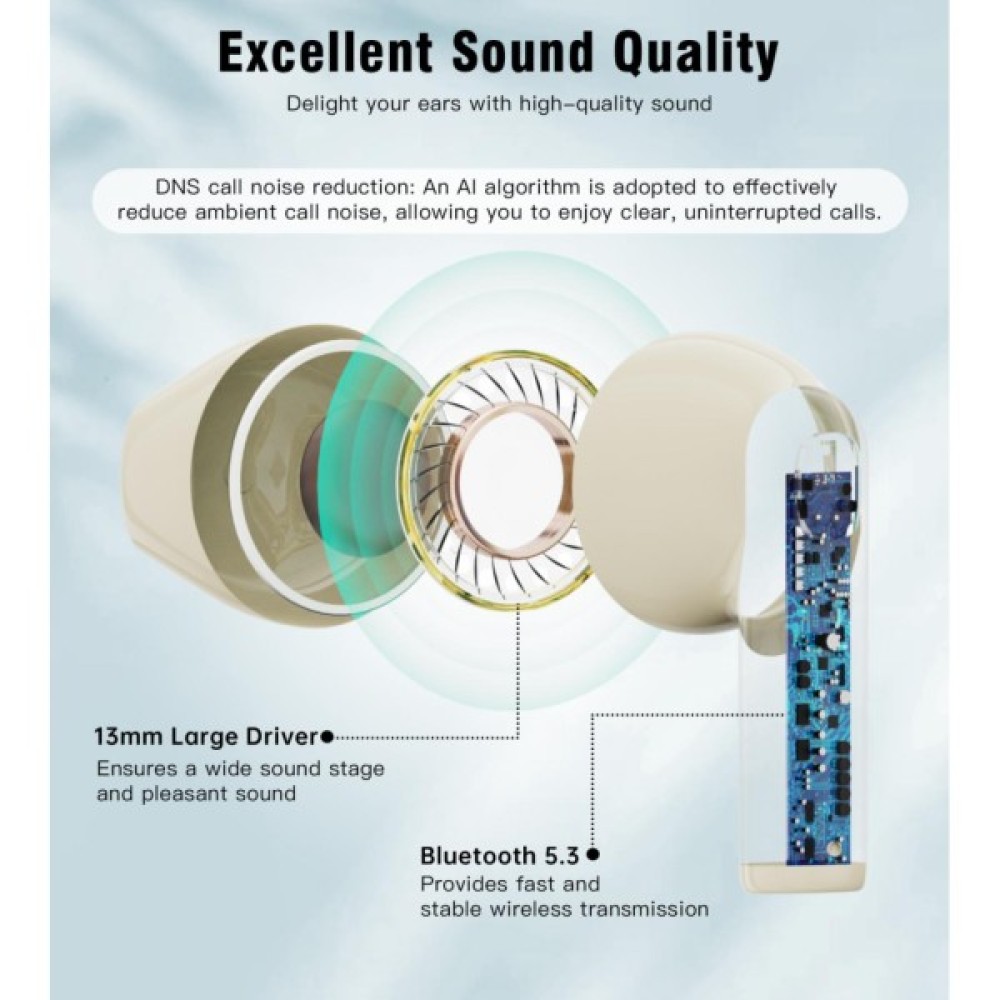 Навушники Choetech TWS Oval Beige (BH-T24-SK) — це поєднання бездоганної технології, стильного дизайну та комфорту, яке робить їх ідеальним вибором для цінителів якісного звуку. Створені спеціально для активного способу життя, вони забезпечують повну свободу рухів завдяки бездротовій технології Bluetooth 5.3, що гарантує стабільне з'єднання з вашим телефоном чи ноутбуком.